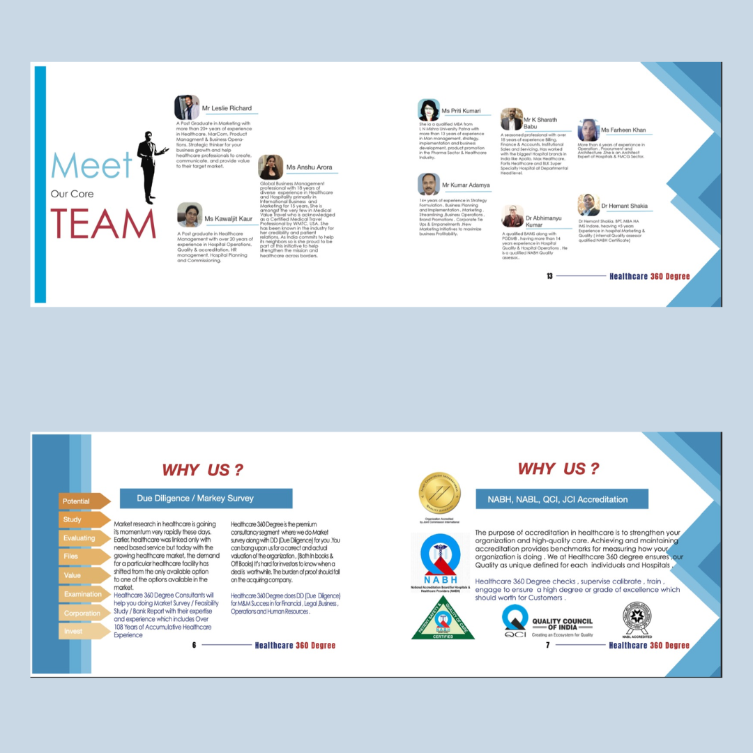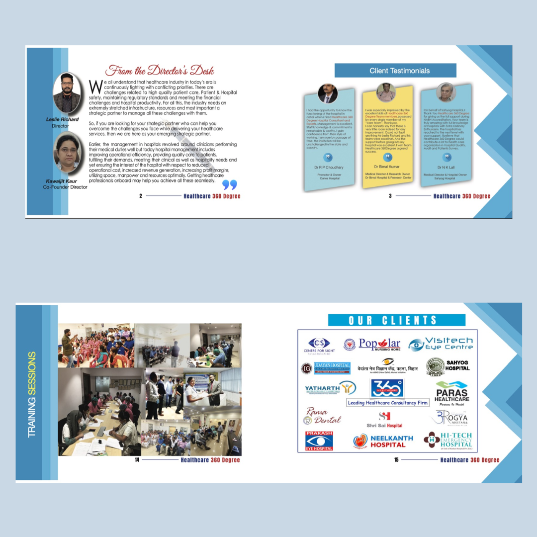 Among the various projects I've had the privilege to work on during my two-plus years with Healthcare 360 Degree, one that holds a special place is the booklet created for their Annual Conference. This 16-page booklet succinctly presents the company's achievements, objectives, and more. It's particularly meaningful to me as it marked my first major project of this scale, which I successfully completed within a week's time. This project reflects my growth as a graphic designer and the value I've added to the healthcare industry by showcasing Healthcare 360 Degree's remarkable journey, goals, and accomplishments.